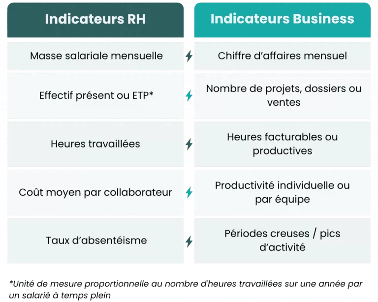 On vous recommande de construire un tableau de bord, regroupant des indicateurs clés issus à la fois de la gestion RH et de la gestion opérationnelle.